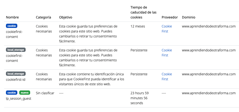 Estas cookies tienen por objetivo guardar información sobre la navegación del usuario en las sesiones anteriores. Con esta información guardada, el sitio web mostrará por preferencia y por defecto la información guardada en el navegador, mostrando la versión del sitio web que mejor se ajusta a los intereses del usuario